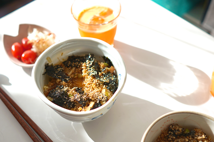 そして、卵黄、韓国のりとすりごまをかけて。
